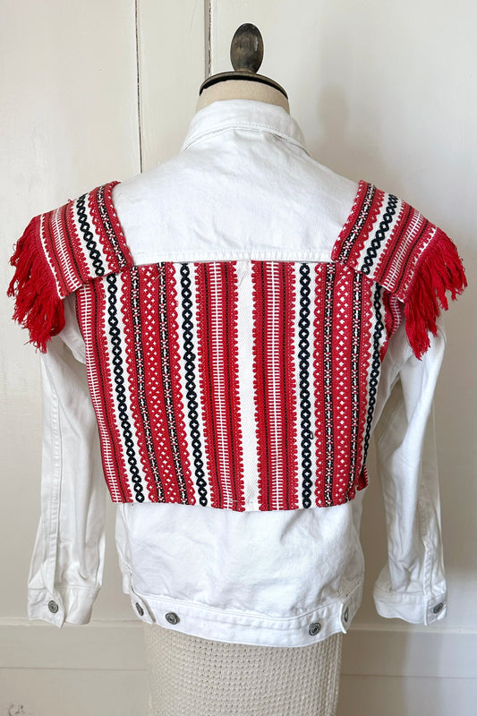Handgemachte Jeansjacke mit Fransen