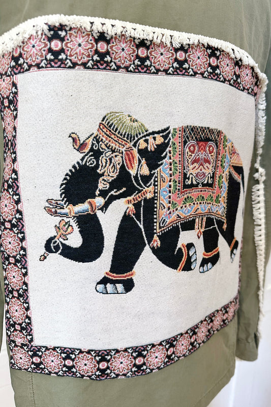 Vegane Lederjacke mit Gürtel in Eukalyptusgrün