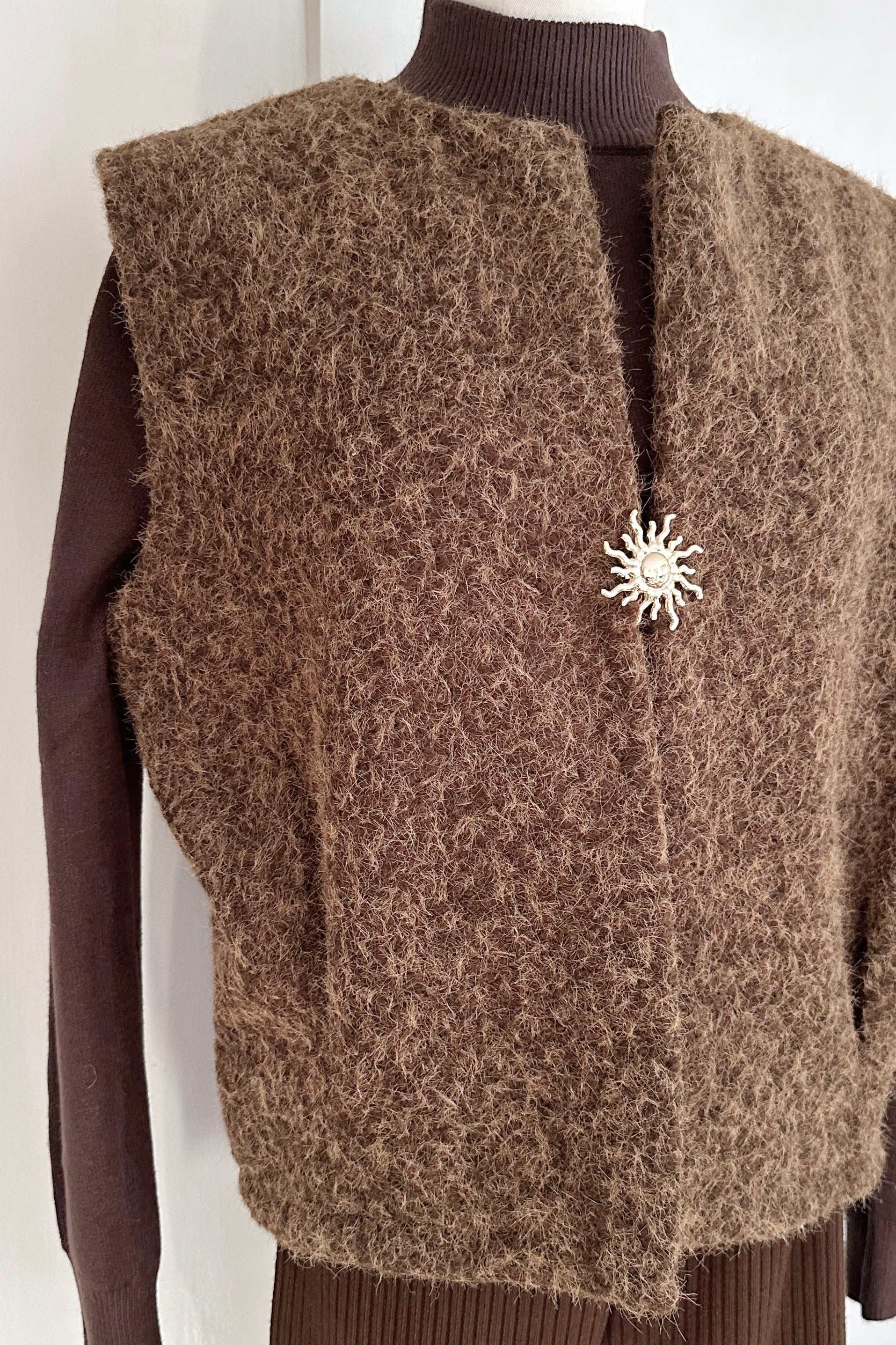 Der Kuschelstoff der Weste spiegelt die Schönheit der wechselnden Jahreszeiten wider. Dieses Stück ist bei 30 Grad im Schonwaschgang waschbar, was es pflegeleicht und langlebig macht. Ein wahrer Bestandteil deiner Garderobe für viele Jahre.