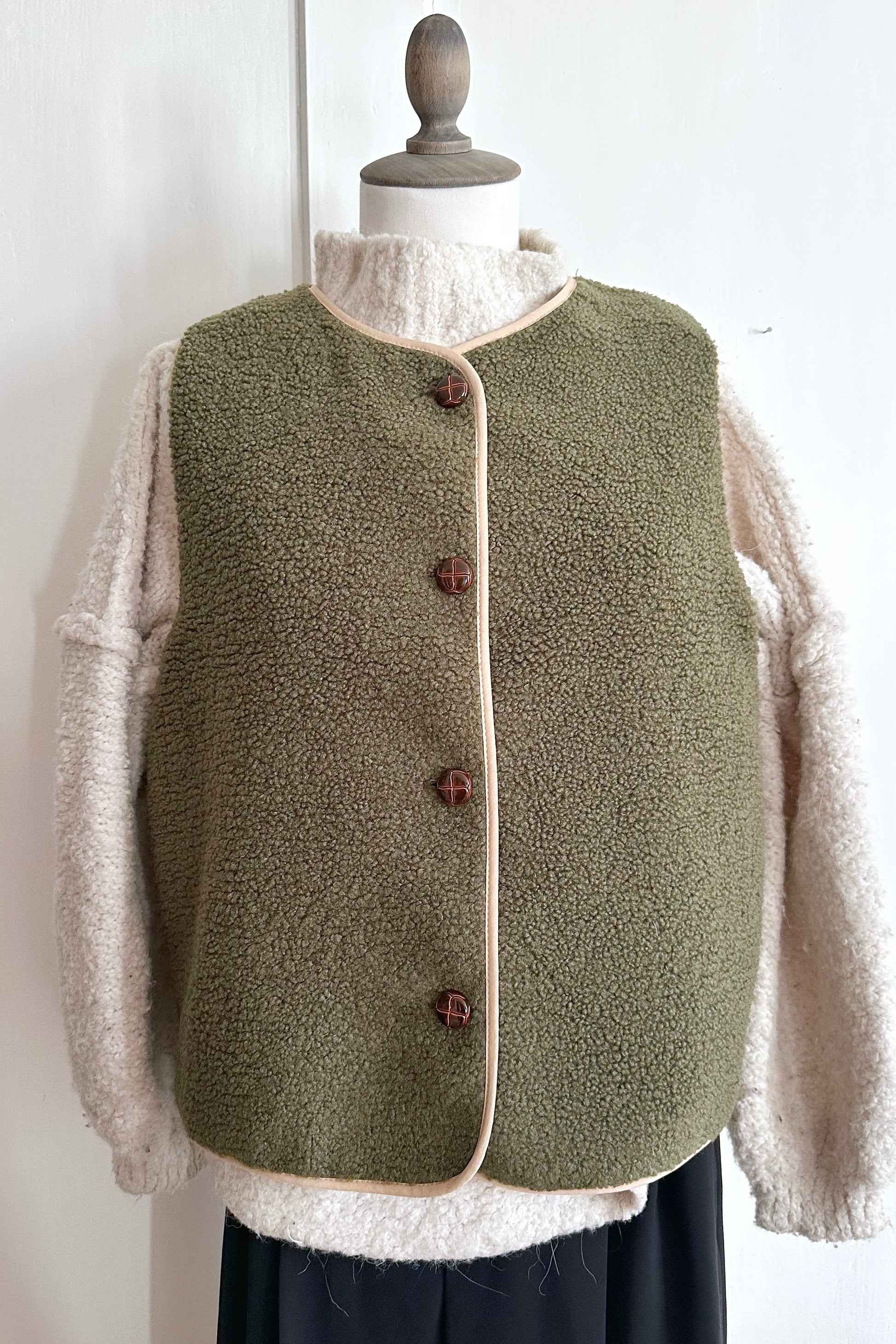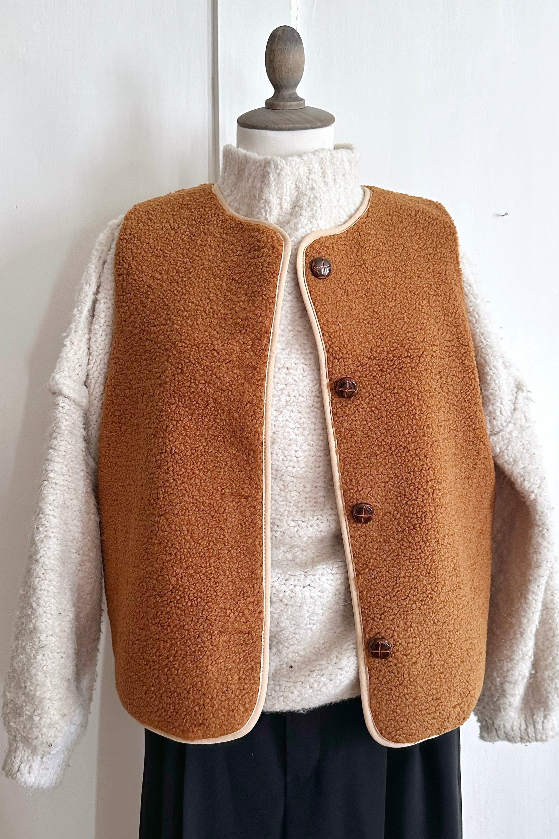 Die Kuschelstoff der Weste spiegeln die Schönheit der wechselnden Jahreszeiten wider. Dieses Stück ist bei 30 Grad waschbar, was es pflegeleicht und langlebig macht. Ein wahrer Bestandteil deiner Garderobe für viele Jahre.