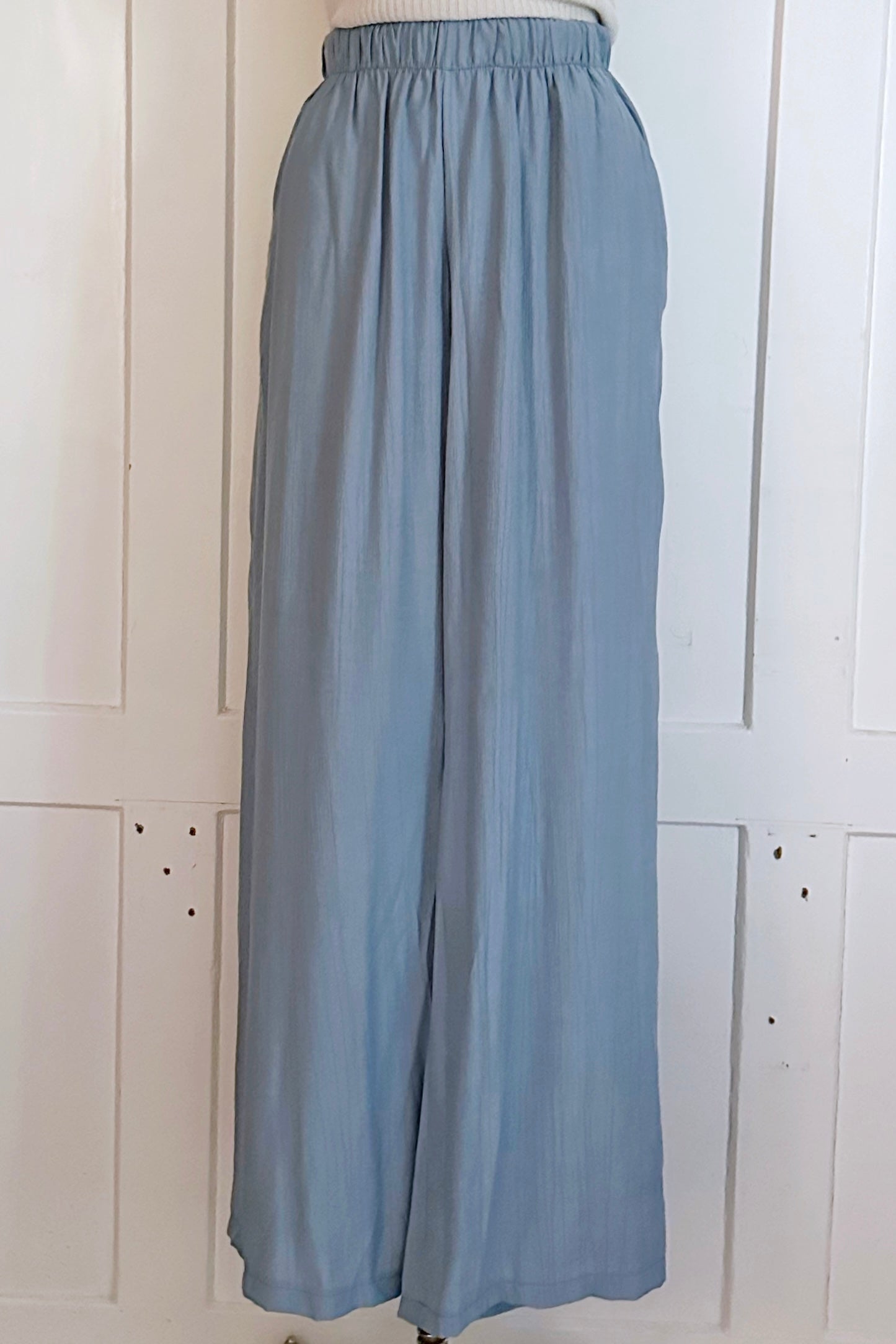 Wunderschöne Hose aus Viskose mit hoher Taille und elastischem Bund. Bequem geschnitten (XS–L) und maschinenwaschbar bei 30 °C. Die natürlichen Farben erweisen sich als sehr gut kombinierbar mit jeglicher Garderobe.